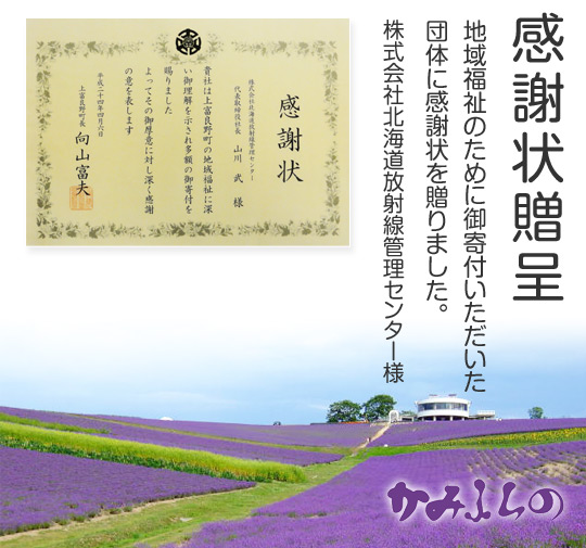 2012年04月10日:上富良野町から感謝状が贈られました。